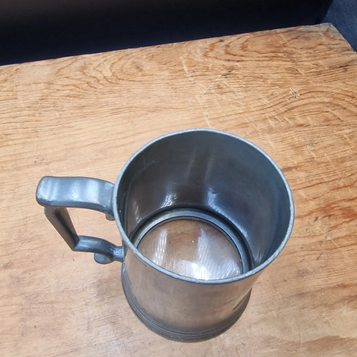 This is a genuine Pewter tankard from the 17-1800's (I believe). It is in good condition with a pint stamp on it which would have been placed there for use in a English Tavern. It also has a glass bottom, to check for dodgy press gang's Pennies (Google it if confused).