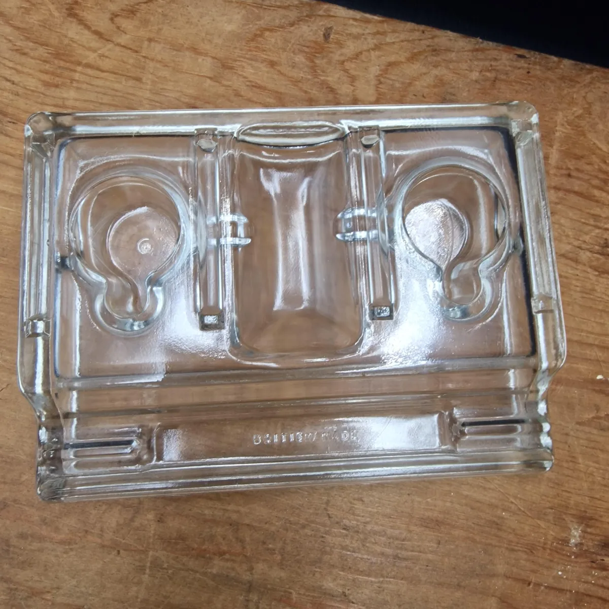 Vintage Glass Double Ink Well and Pen Rest Made in England good for Calligraphy