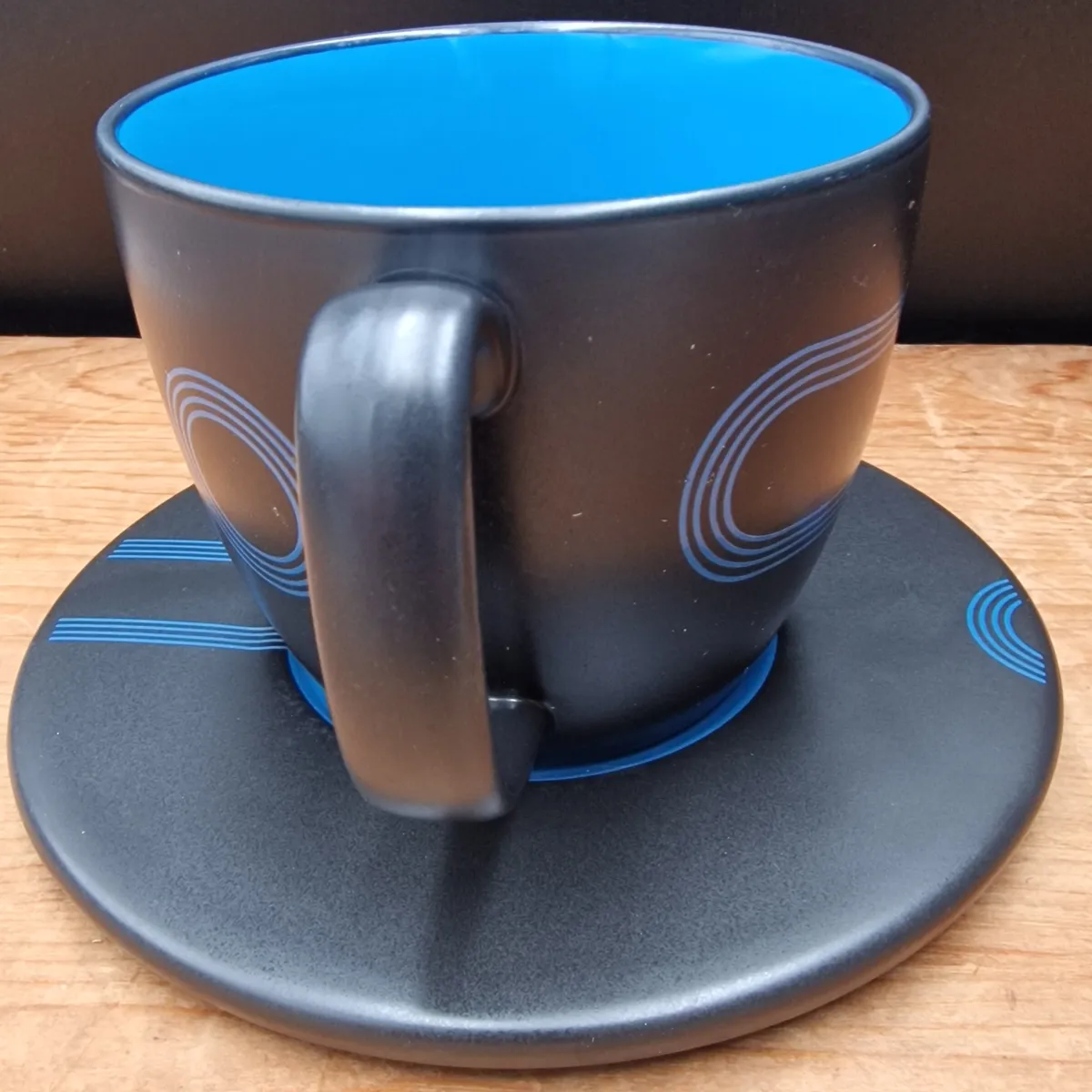 Vintage 1980's IKEA Cappuccino Cup and Saucer BLUE - Rare Record Plate Classic