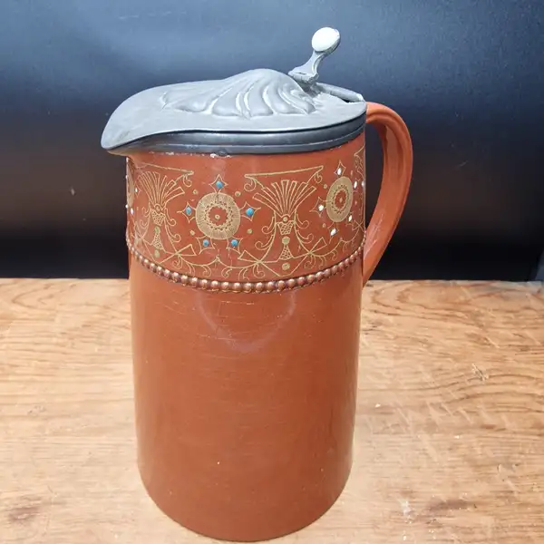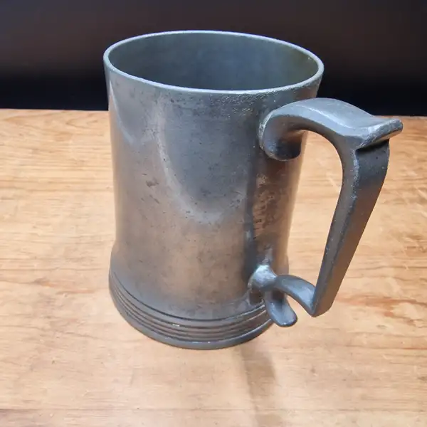 Image Price £68.50 Title Antique Pewter Pint Measure Tavern Tankard with Glass Bottom 1800's Pub View product