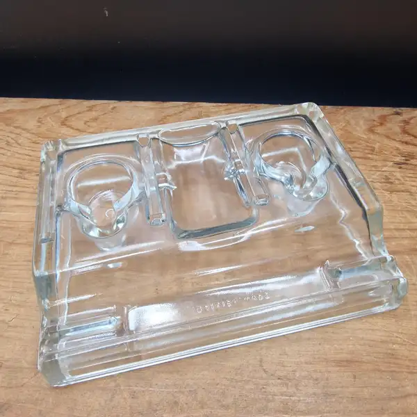Image Price £22.50 Title Vintage Glass Double Ink Well and Pen Rest Made in England good for Calligraphy View product