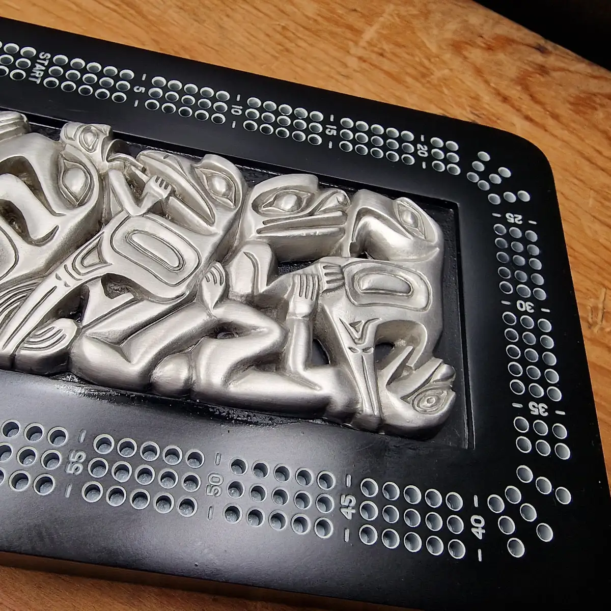 Native Canadian Panel Cribbage Board with Pewter Pegs